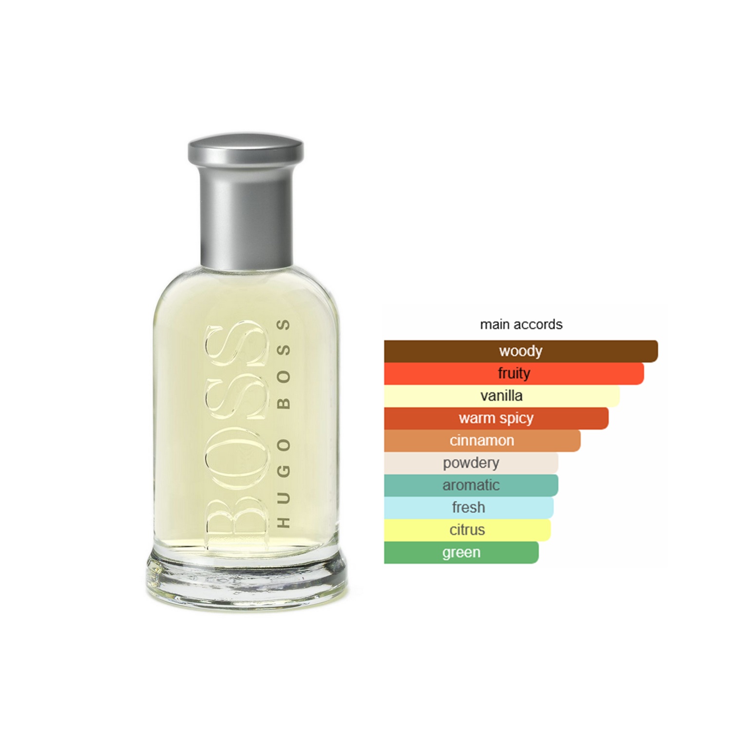 Boss Bottled by Hugo Boss is a Woody Spicy fragrance for men. Boss Bottled was launched in 1998. Boss Bottled was created by Annick Menardo and Christian Dussoulier. Top notes are Apple, Plum, Bergamot, Lemon, Oakmoss and Geranium; middle notes are Cinnamon, Mahogany and Carnation; base notes are Vanilla, Sandalwood, Cedar, Vetiver and Olive Tree.